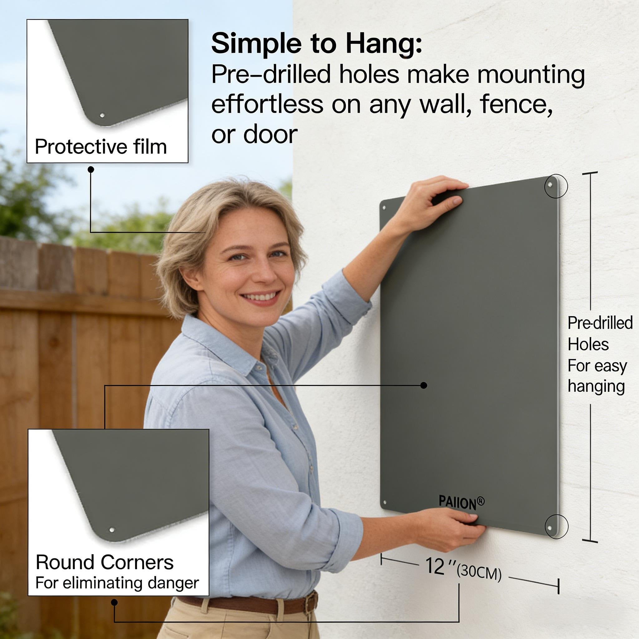 Simple to Hang: Pre-drilled holes make mounting effortless on any wall. fence. or door.